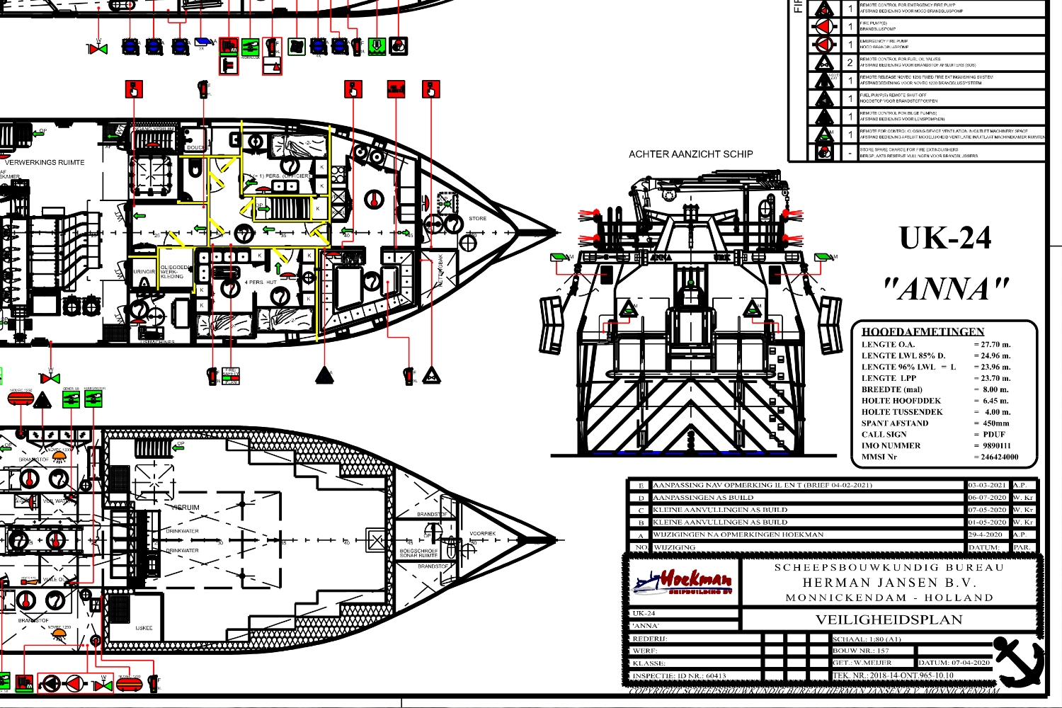 Scheepsbouwkundig Bureau Herman Jansen B.V. beschikt over gecertificeerd personeel dat gespecialiseerd is in het opstellen van brandbestrijdings- en veiligheidsplannen voor alle typen schepen, in opdracht van reders, werven en onder toezicht van alle gangbare klassebureaus.